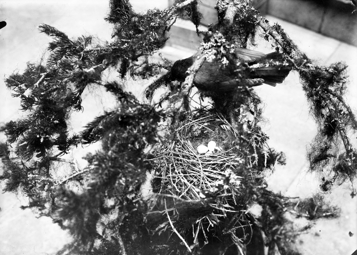 Fågelbo, Lavskrika, Perisoreus Infanstus. Malmö museum (nedsänt av mig från Lappland