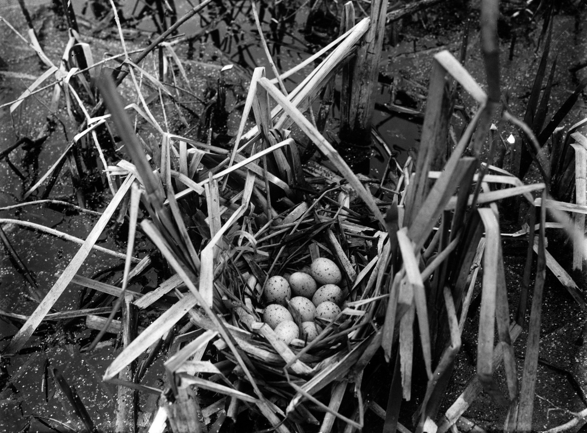 Fågelbo med ägg av rörhöna (Gallinula c. chlóropus) 1915