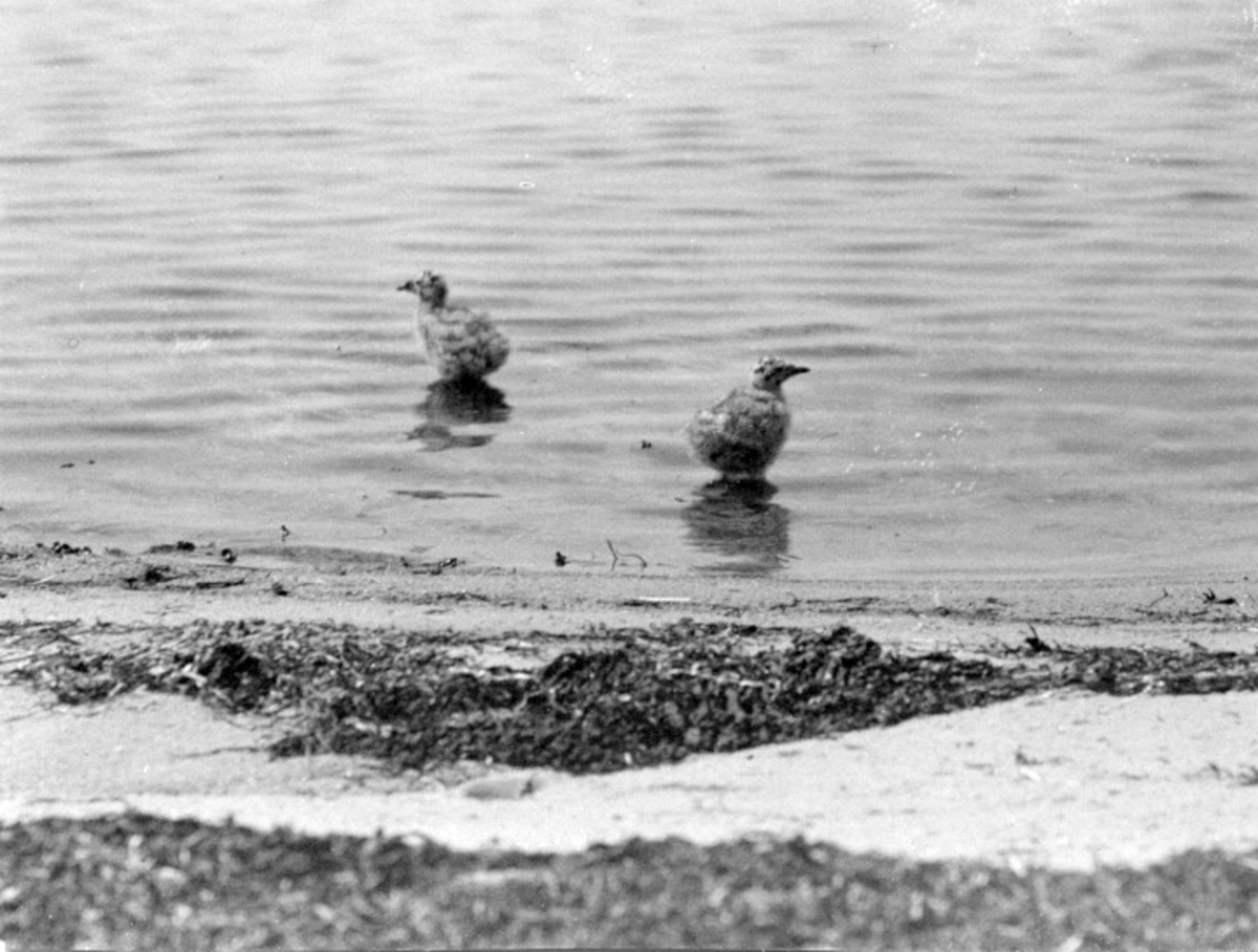 Skrattmås (Larus Rdibúndus) ungar i vattnet 18/6-1919.