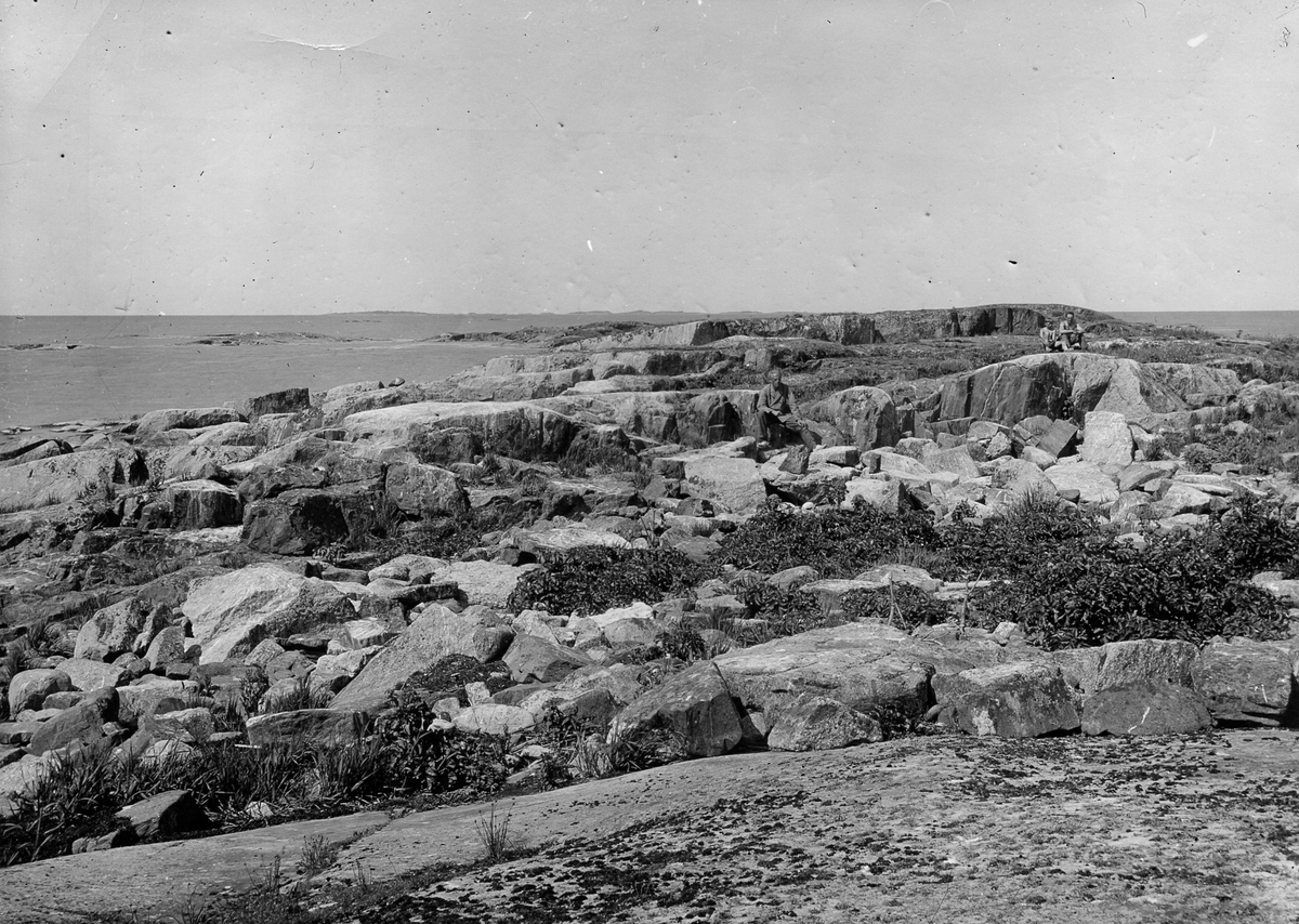Boplats för en tordmule koloni ,för skärpiplärka, blockstrand med riklig Angelica-vegetation å Östra Norrkobben i n.delen av Lynge skärgård. Stockholms län foto E.Wibeck 15/6 1937