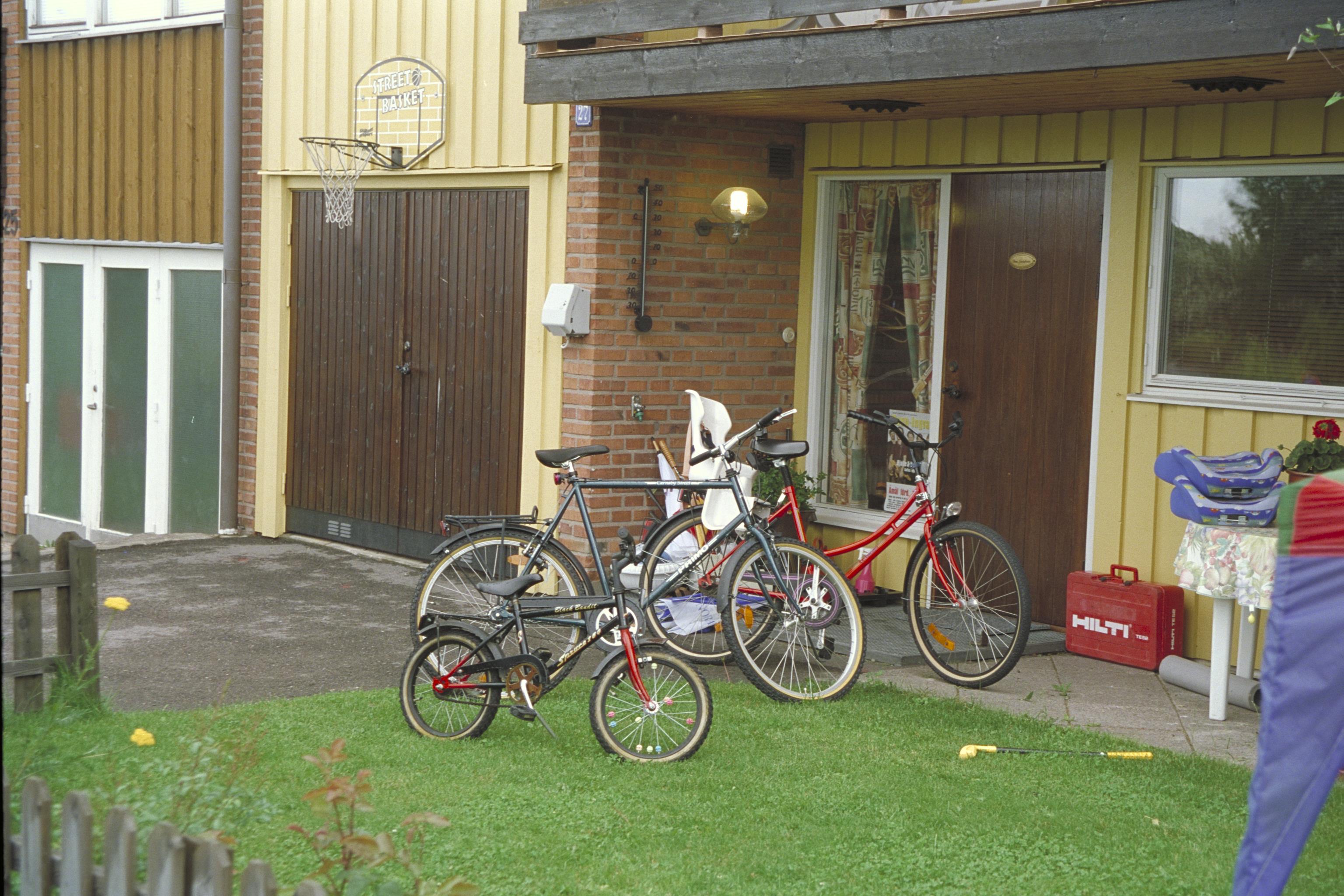 Bostadsområdet Karlberg, Karlbergsvägen. Entré och cyklar.