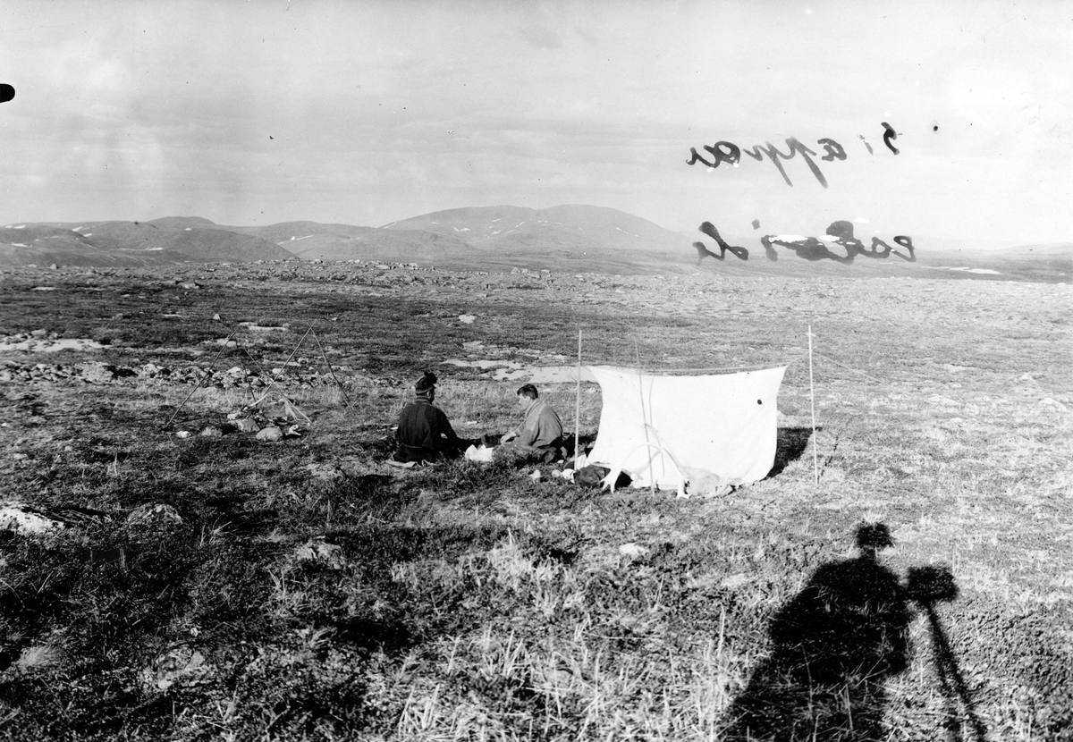Vårt läger vid Luopatha(?) (ny, bättre kopia önskvärd) Lapparnas tält Skuggan av mig, fotografen