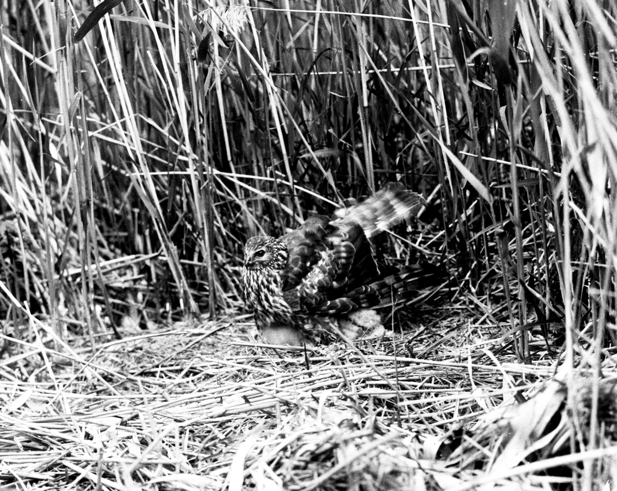 Blå kärrhökhona (Circus cyaneus) över ungarna. 1923