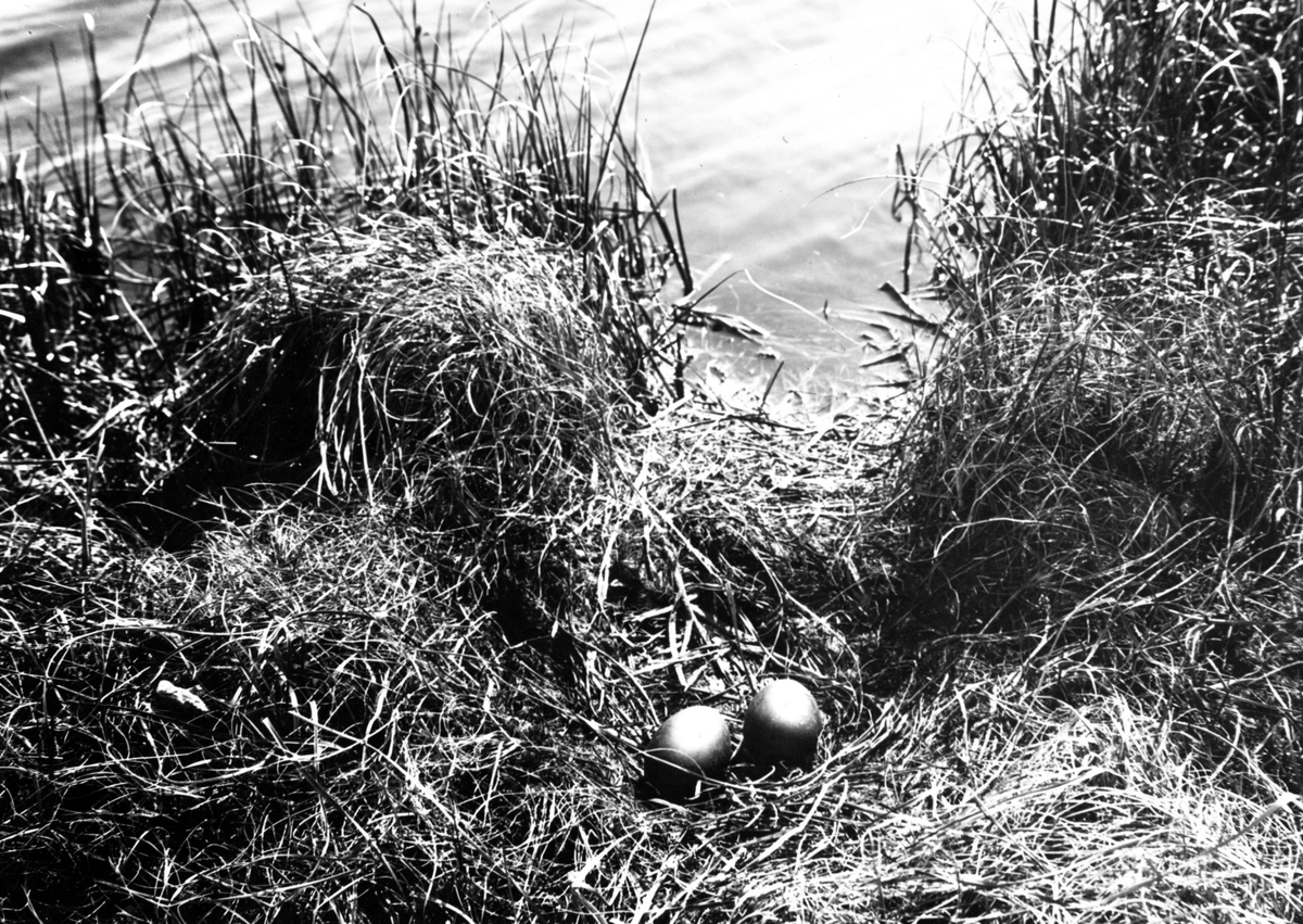 Gavia arctica, storlommens bo (med utgång till sjön) Könkämä älven