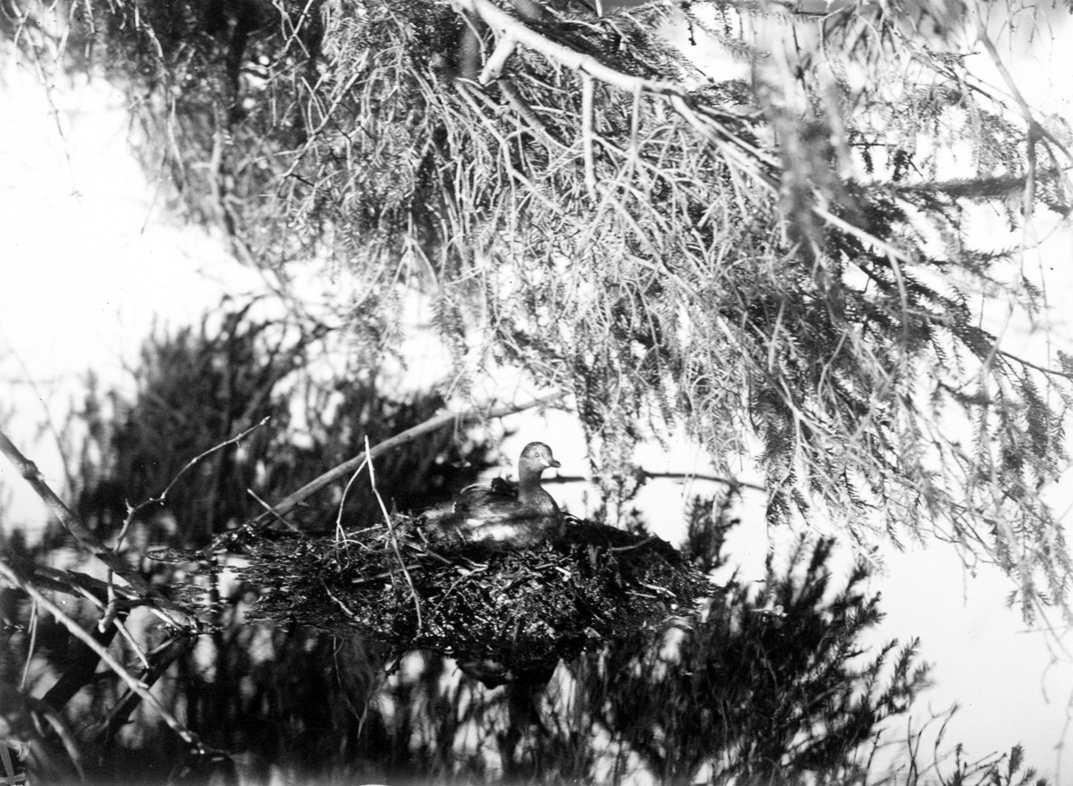 Podiceps minor, smådopping på boet. Karnavävaresjön, Skåne