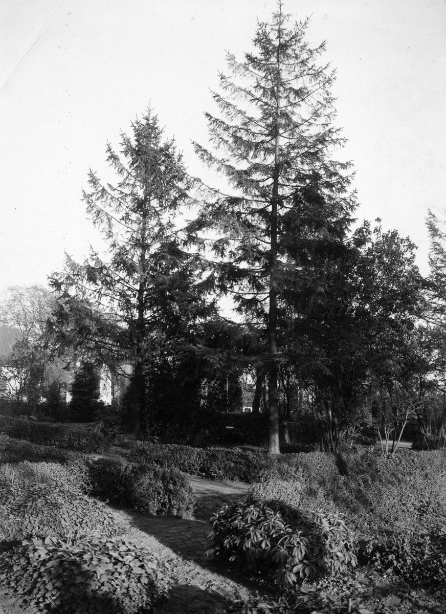 Biotop för grönfink, Fringilla chloris. Bo i höga granen.