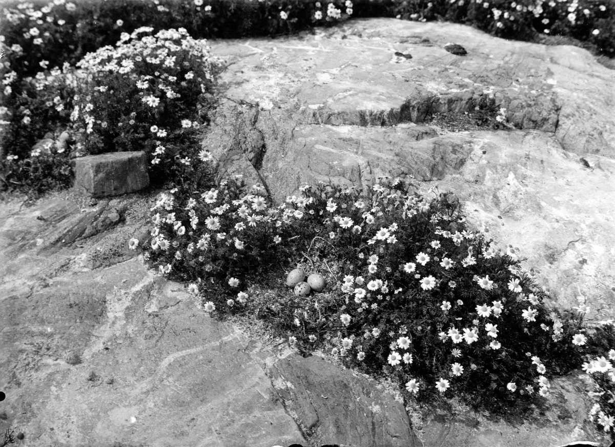 Skräntärna, Sterna caspia, Lövjeskär Källskären, Skräntärnebo bland baldersbrå
