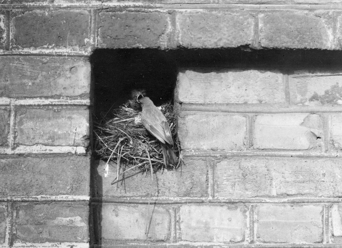 Svart rödstjärt, Phoenicurus ochruros gibraltariensis, matar ungarna i boet.