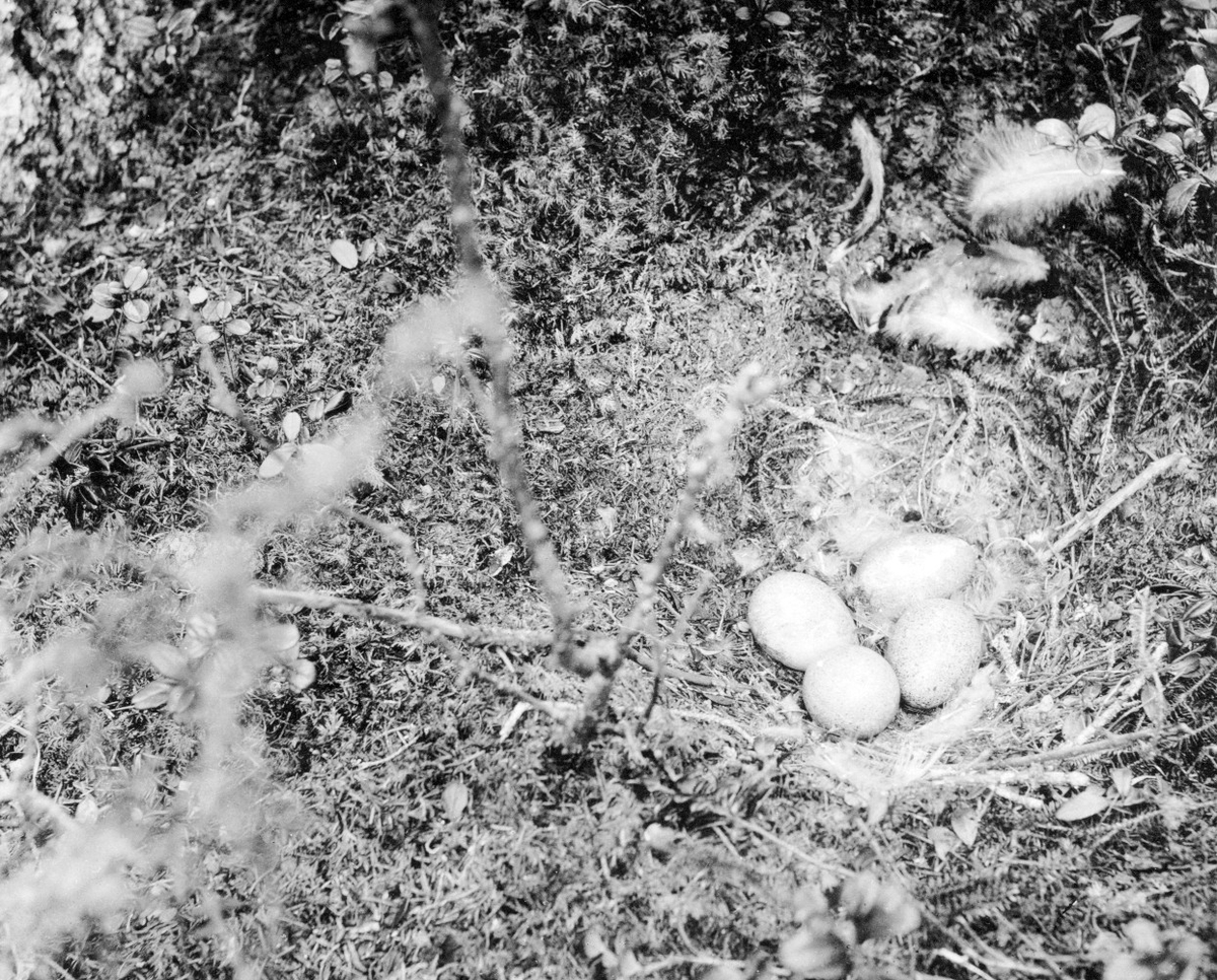 Bo av Tjäder (Tetrao urogallus) under en större lummig gran.