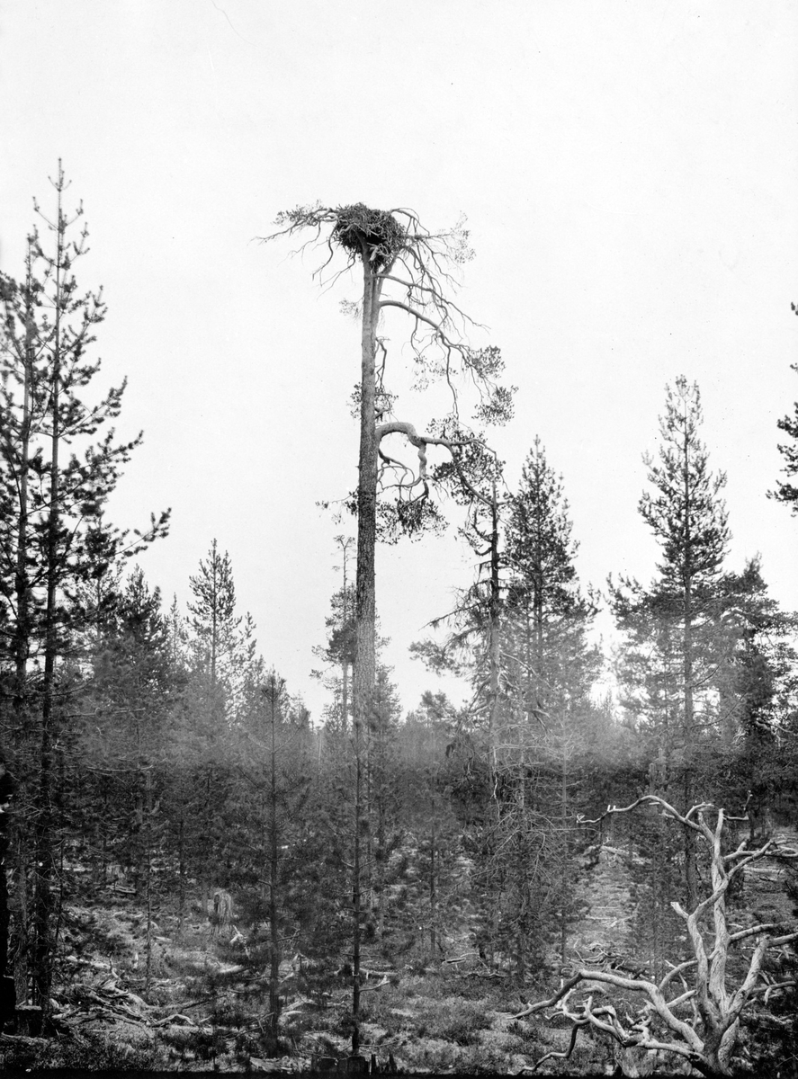 Bo af fiskgjuse, Pandion haliaetus Bebodt af stenfalk, Falco columbarius Murjek-trakten, Lule lappmark 27/5 1925 Foto E. Wibeck