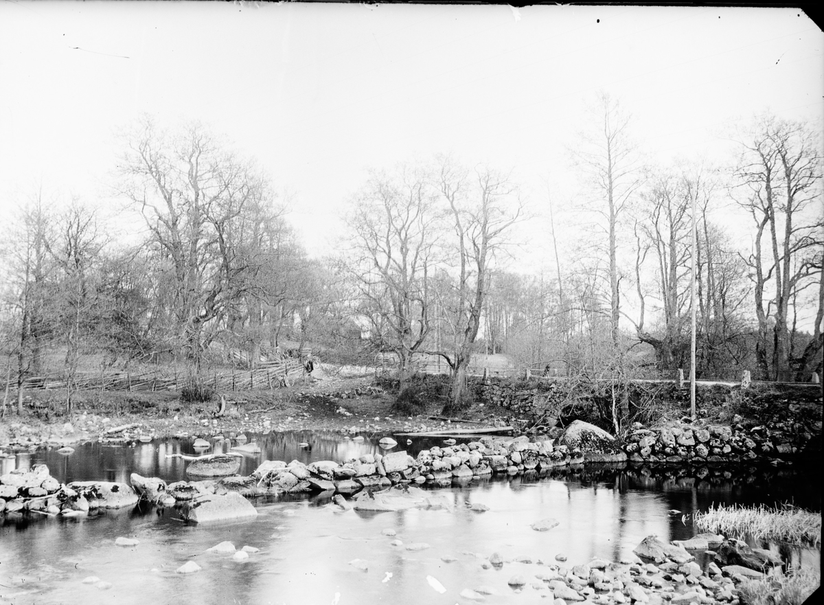 (Å, stenbro, vattendelare, vägbank med kärra och häst/skymd)