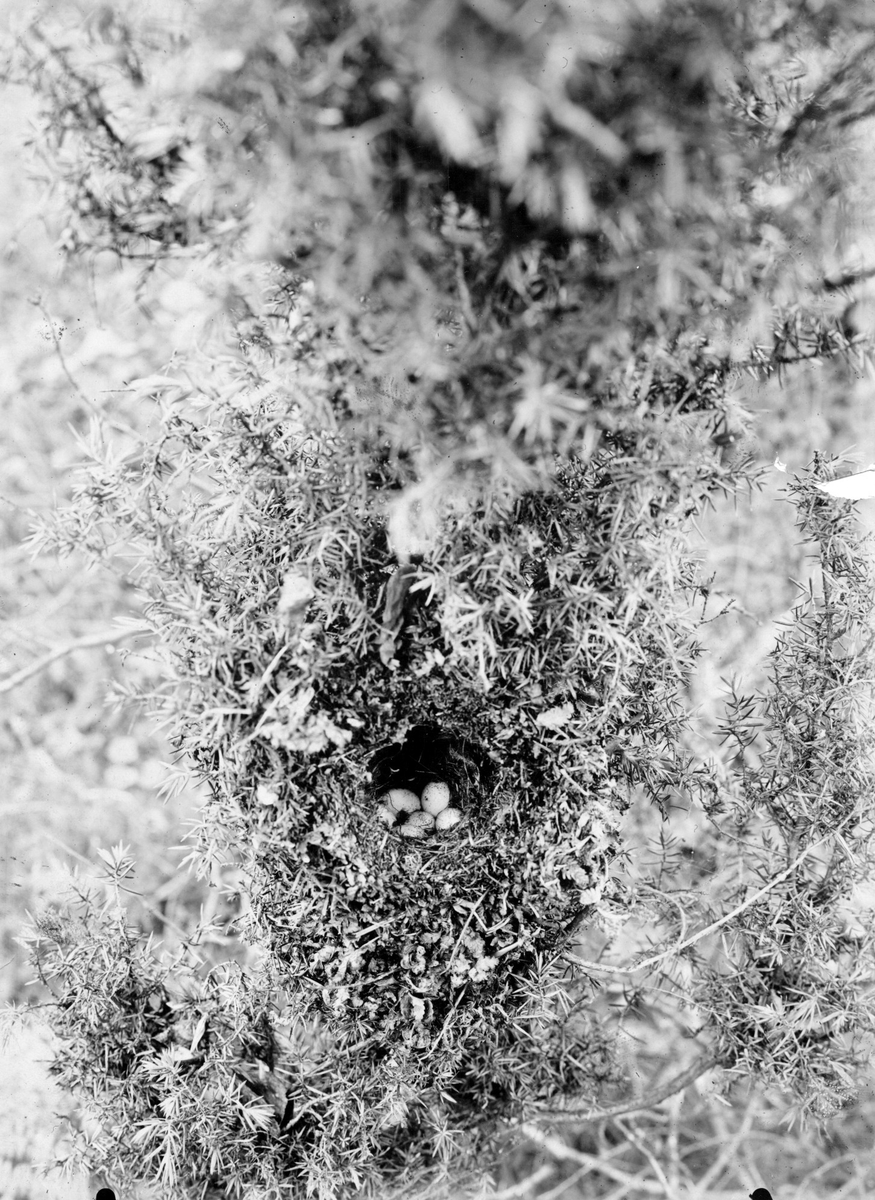 Bo (i enbuske) av gärdsmyg (Troglódytes t. troglodytes).