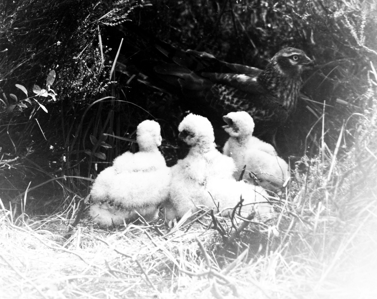 Ängshök-ungarna i skuggan (Circus pygargus)
