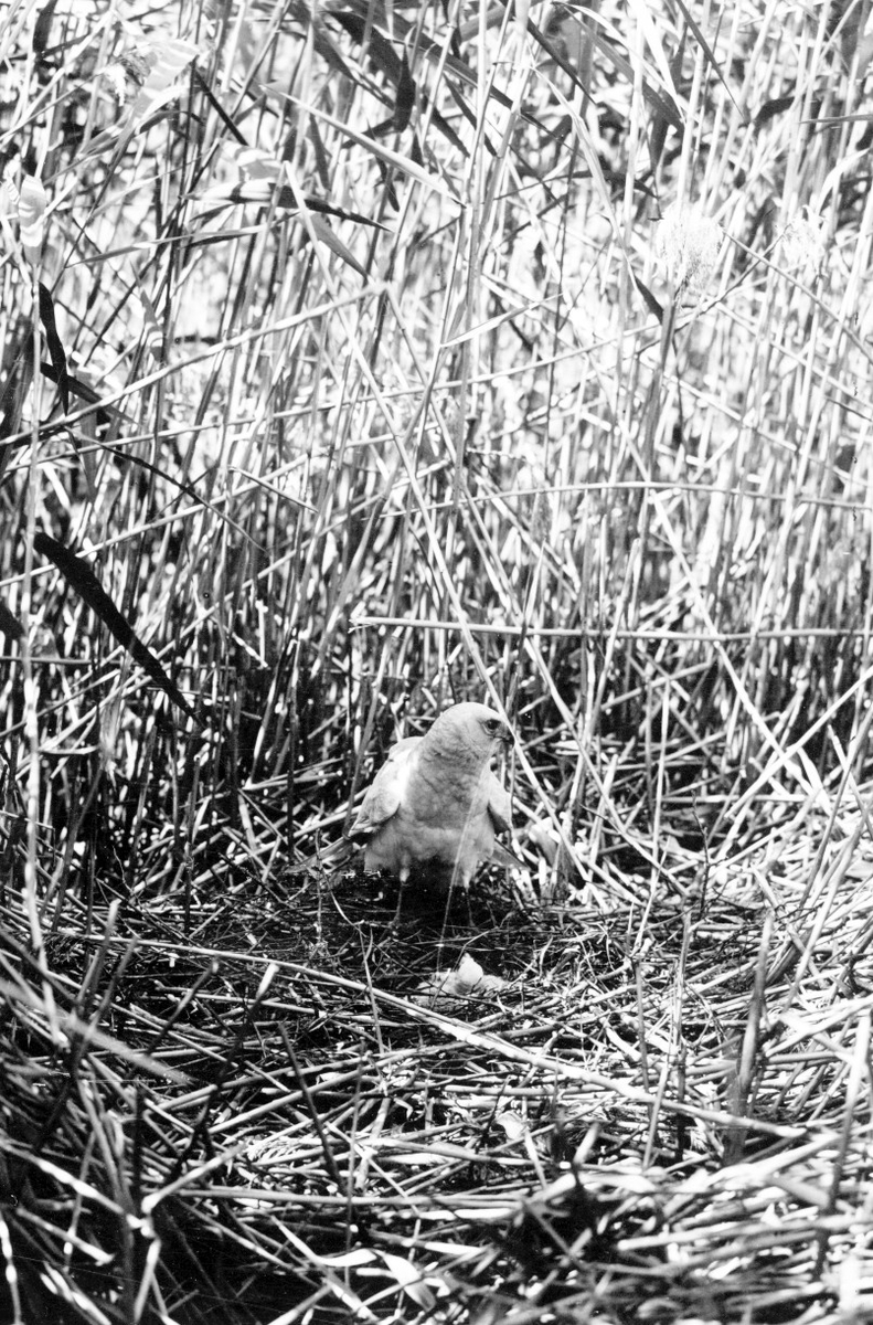 Blå kärrhökhanen (Circus cyaneus) vid boet