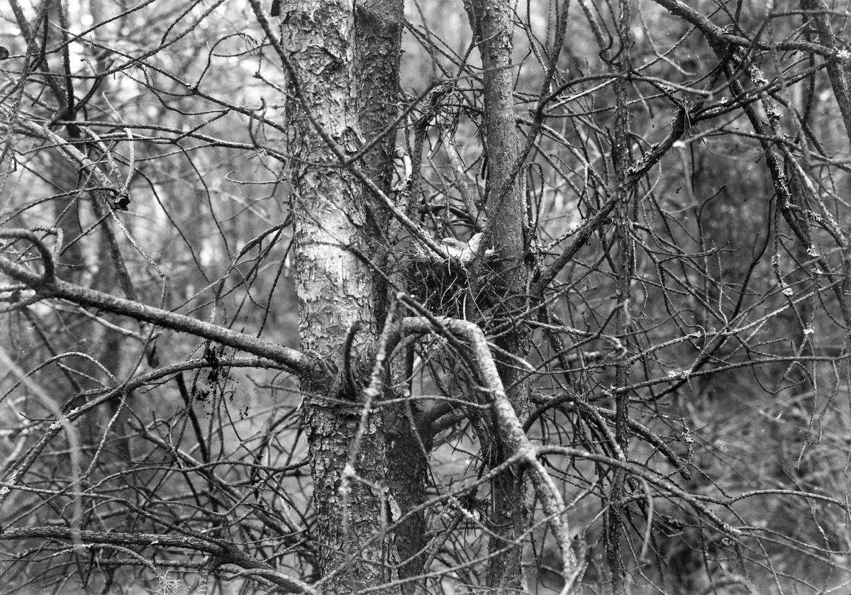 Ruvande ärtsångare, Sylvia curruca, ärtsångare i boet. Ljungen 21 juni 1908