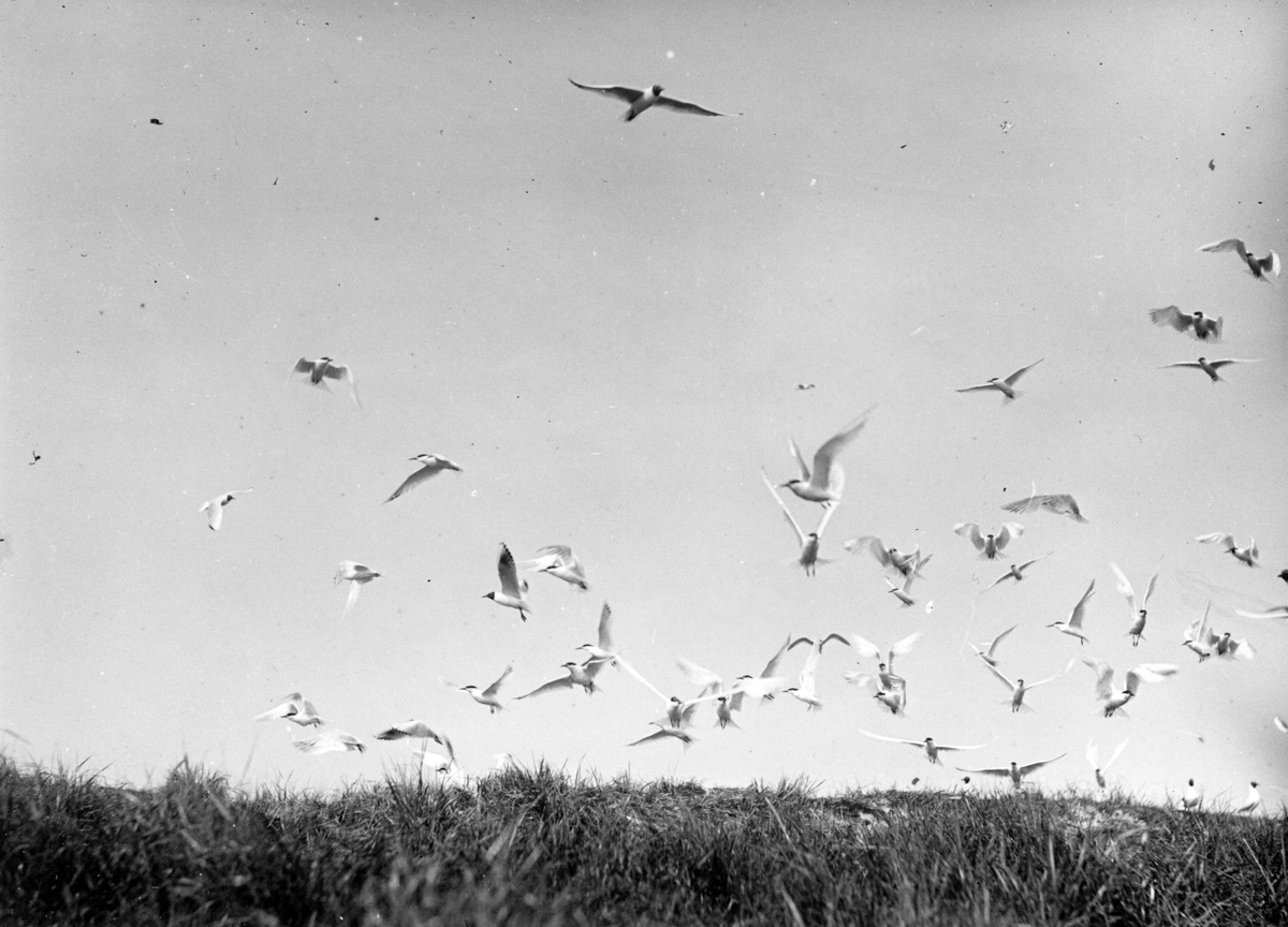 Kentska tärnor, Sterna cantiaca, över Måkläppen, (en skrattmås överst), 10/6 1926