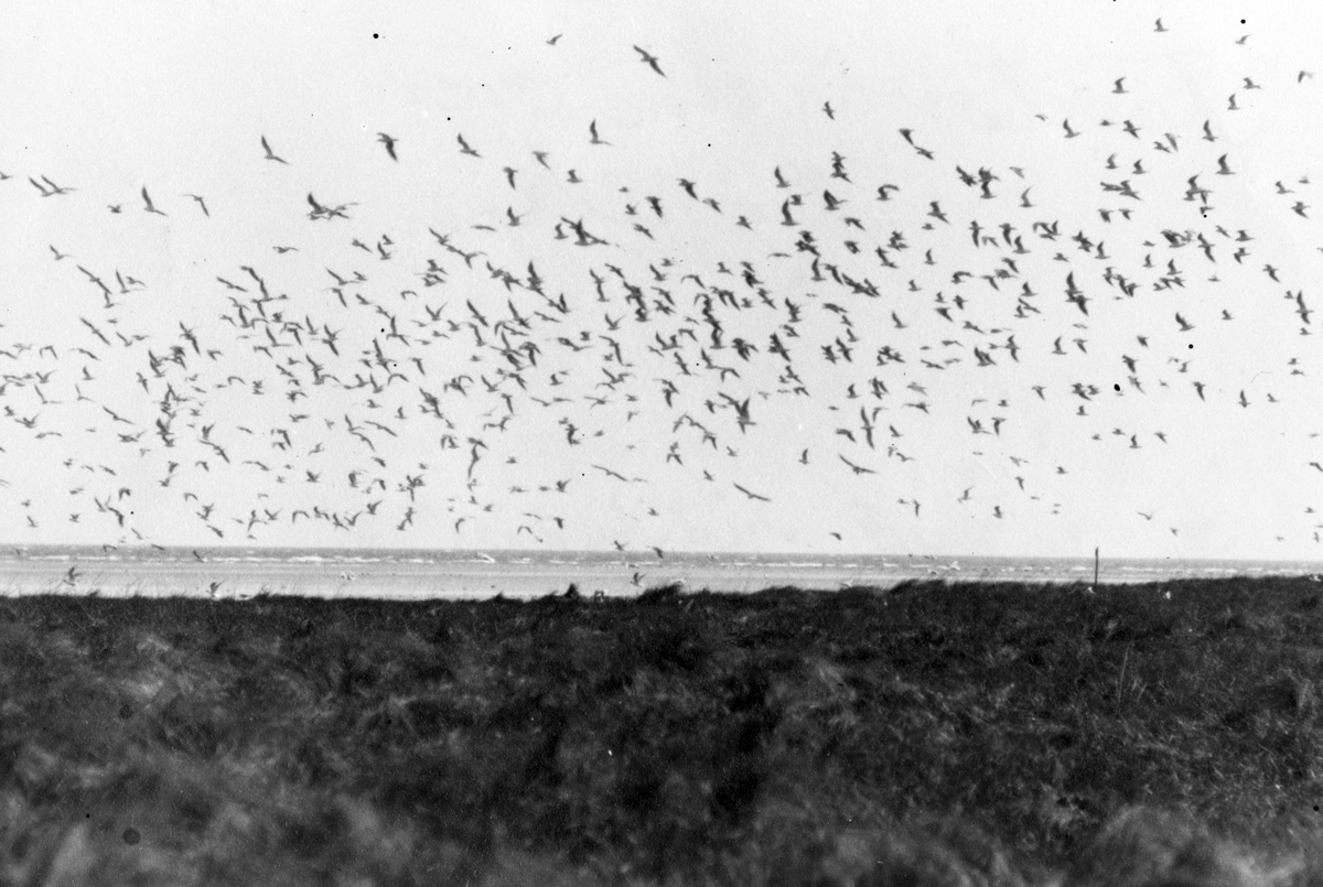 Fågelsväärm över Måkläppen. Flest Skrattmås (Larus ridibundus).