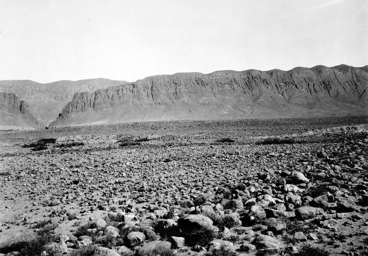 Stenig ökenmark ofanför Öknens mun El Kantara, Algeriet Häckningsterräng för Ammomanes (deserti algerinensis) (ökenlärka)