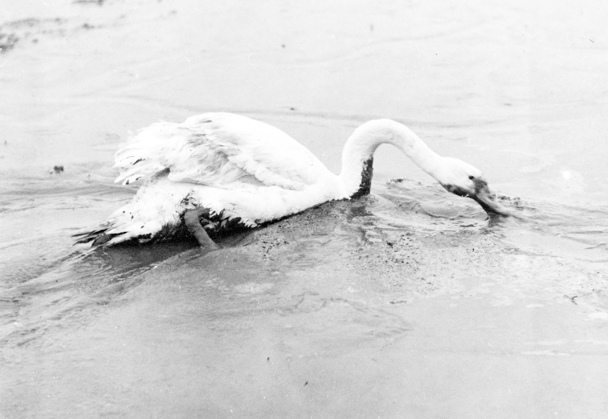 Svanen( Cygnini) sörplar i dyn efter mat. 22 October 1933