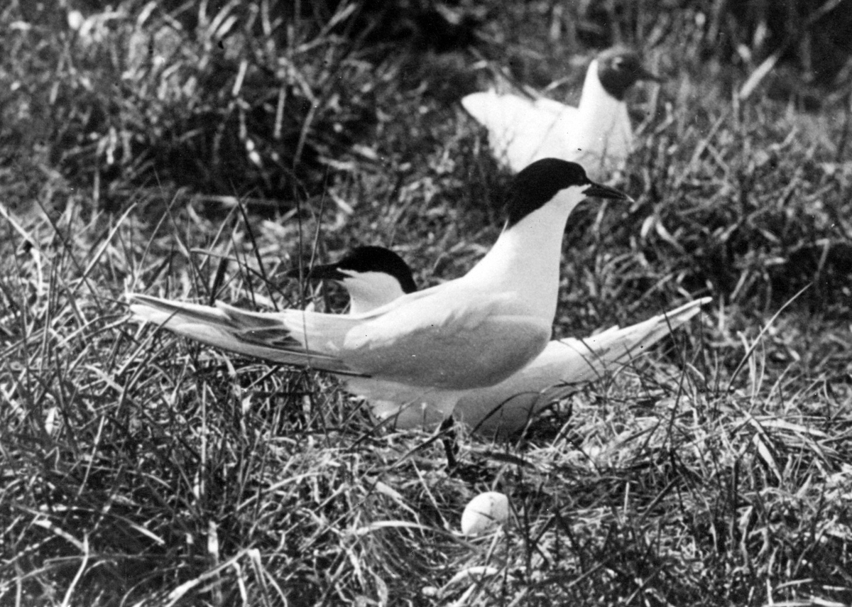 Ett par Kentska tärnor, Sterna cantiaca och en skrattmås