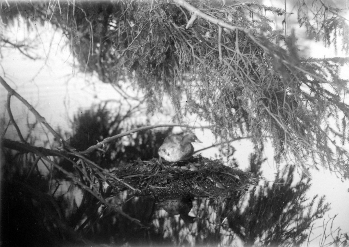 Podiceps minor, smådopping på boet. Karnavävaresjön, Skåne