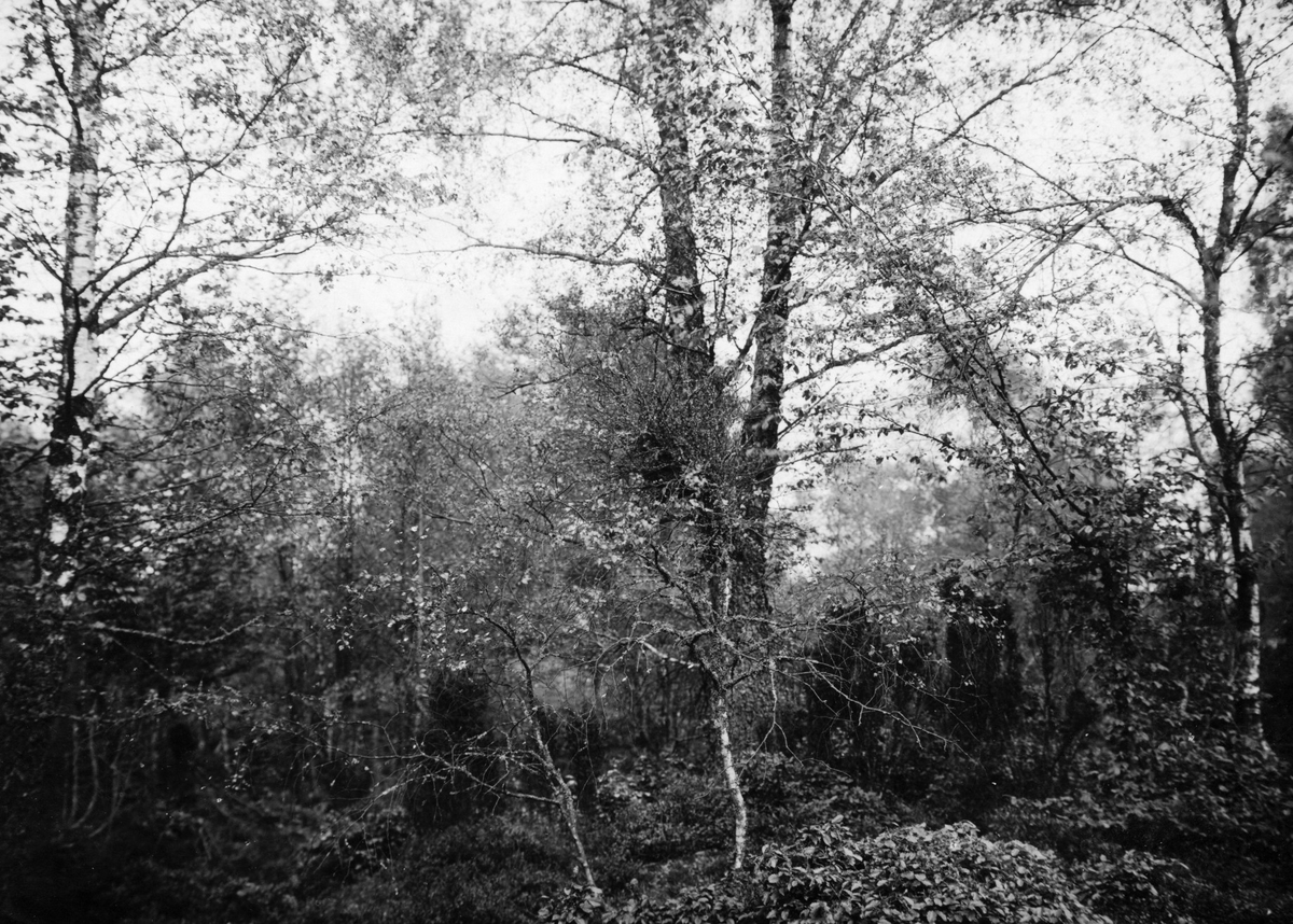 Boplats för gärdsmyg (Troglodytes europaeus), bo i enbuske mitt i bilden. 1 juni 1914.