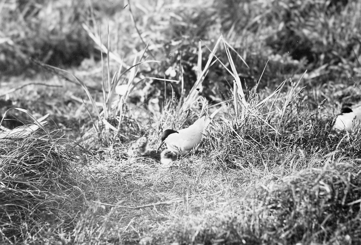 Fisktärna böjer sig ner över ungarna i boet. 6/6-1915