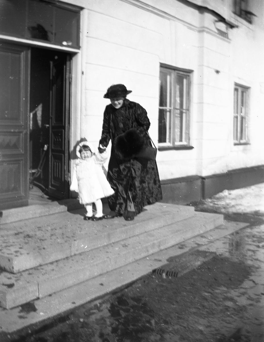 Kvinna och barn i dörröppningen