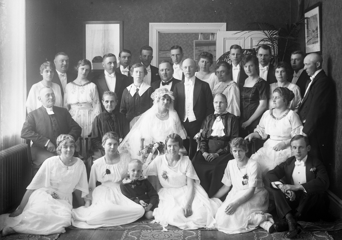 Brudpar med släkt och vänner.