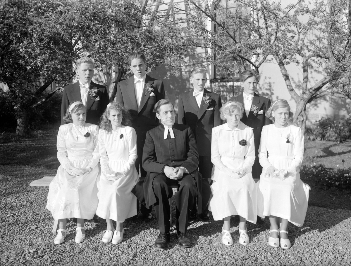 En grupp konfirmander med präst.