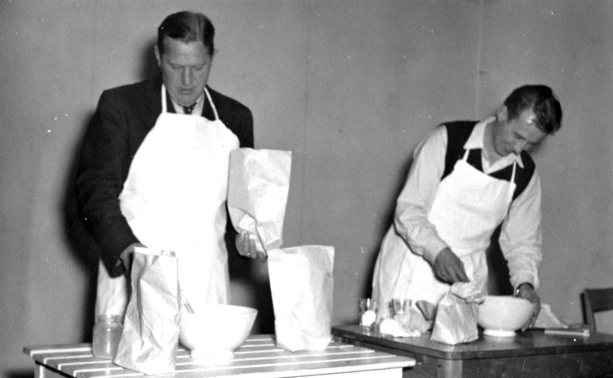 Män som bakar. Bilden ingår i ett fotoalbum.