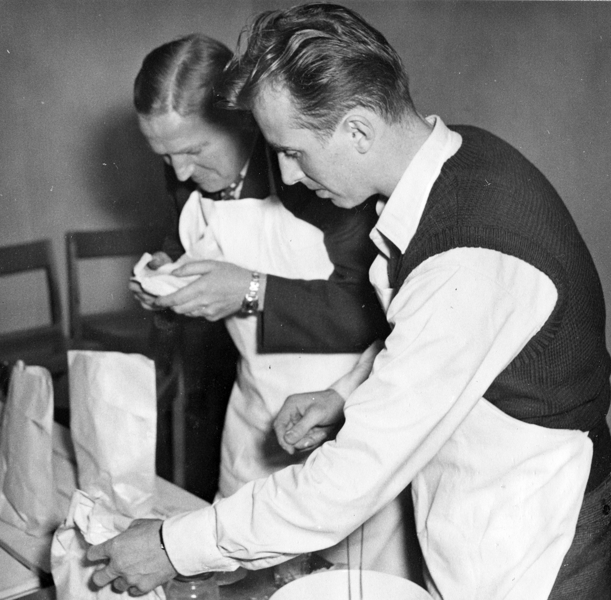 Män som bakar. Bilden ingår i ett fotoalbum.