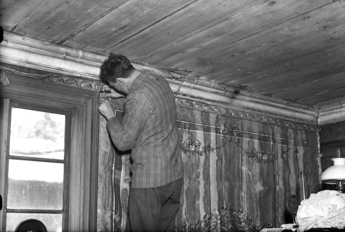 Tapeter med Hans Wikström-målningar från 1827 tas ner.