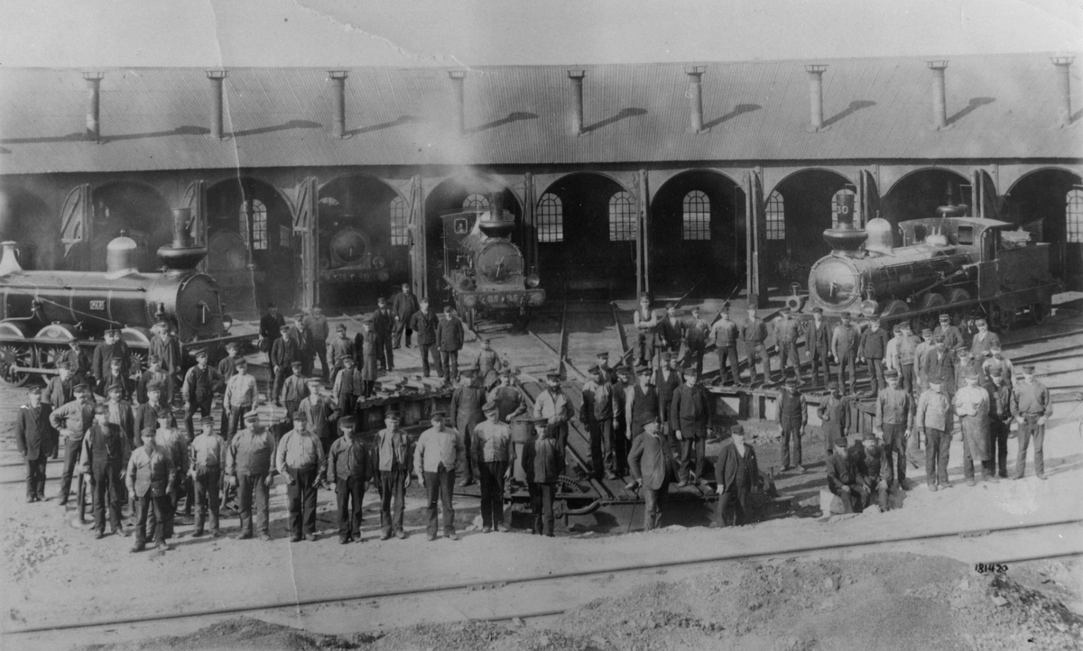 Personal vid GDJ:s lokstall vid sekelskiftet.