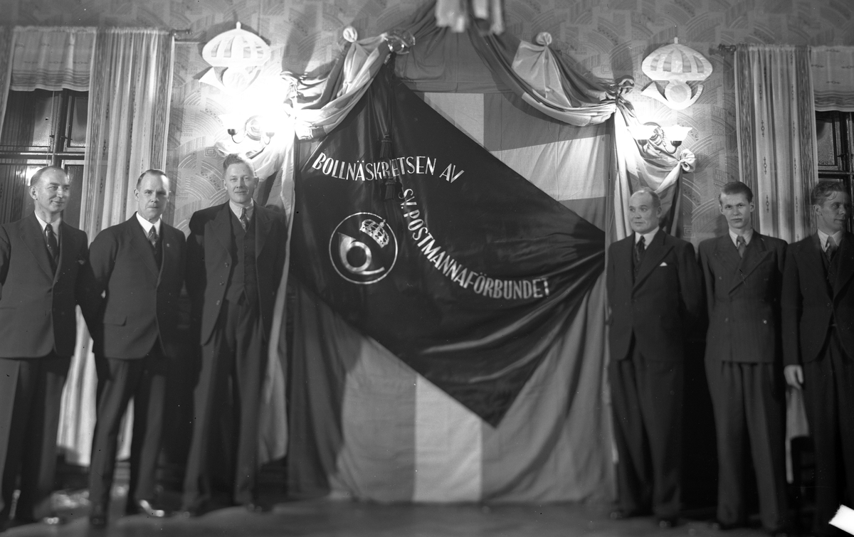På fanan står det "Bollnäskretsen av Svenska Postmannaförbundet".