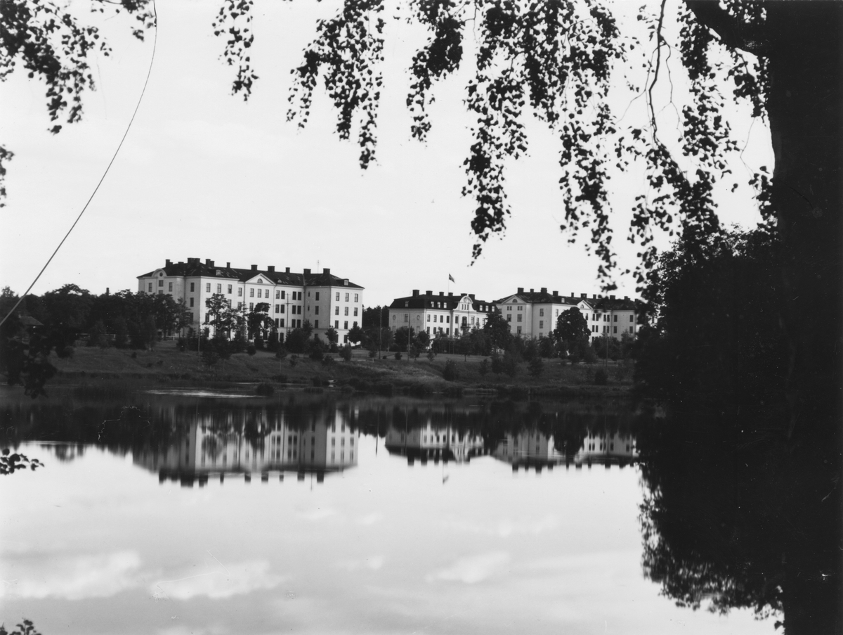 Kasernerna vid Kungsbäck, tagna över gavleån från stadsträdgården.