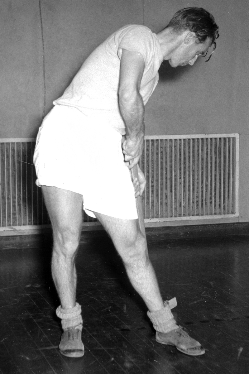 Bandyträning. Bilden ingår i ett fotoalbum.