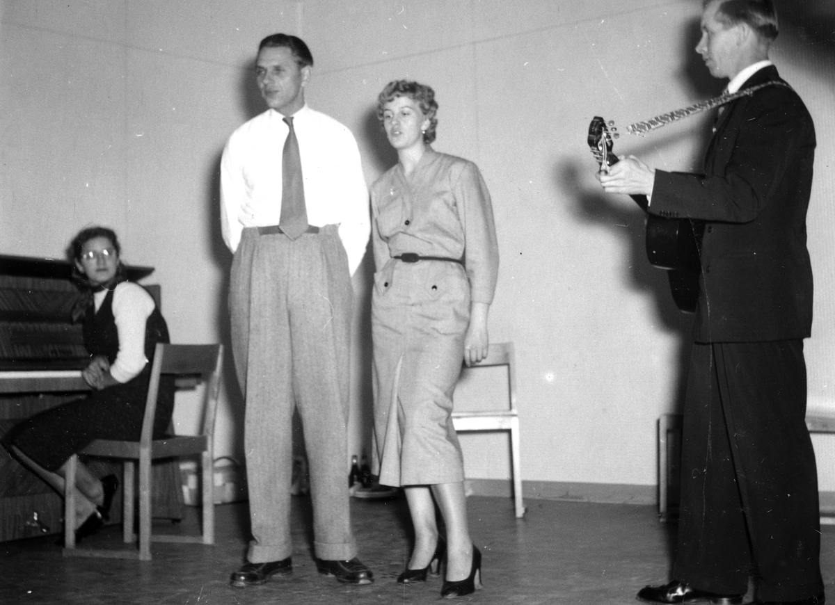 Underhållning med sång och musik. Bilden ingår i ett fotoalbum.