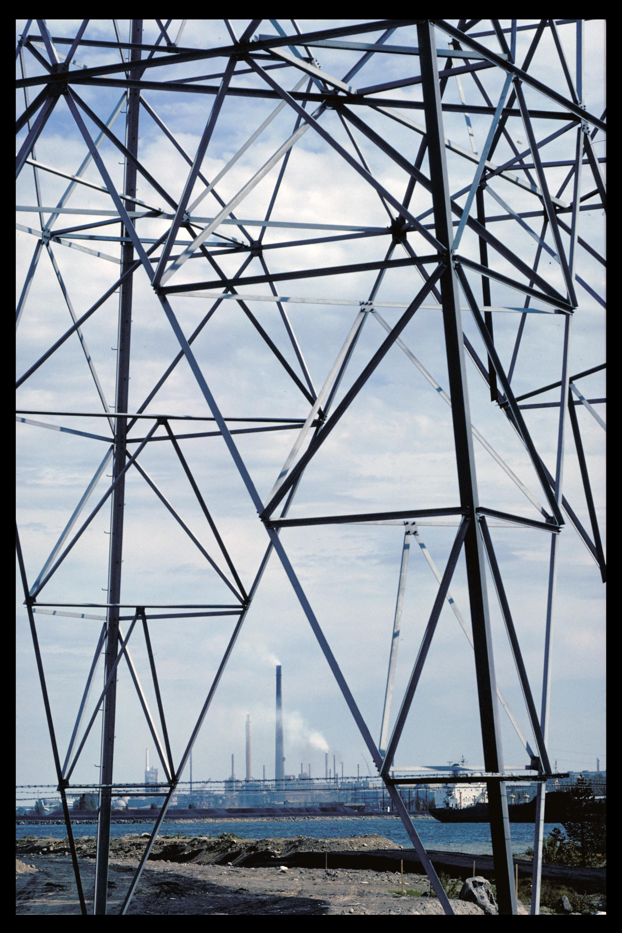 Smältverket i bakgrunden, kraftledningsstolpe i förgrunden. Bilden troligen från slutet av 1970-talet.
