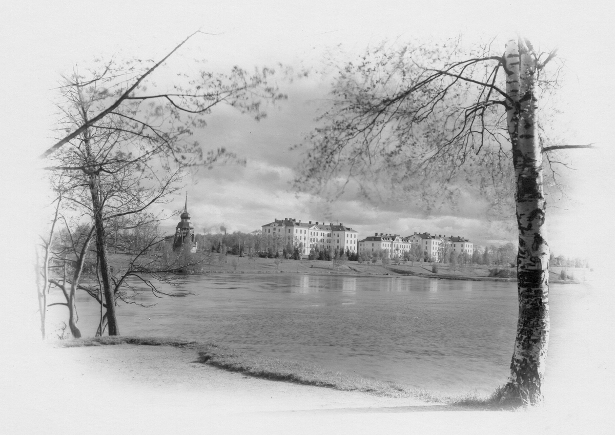 Kasernerna vid Kungsbäck tagna från stadsträdgården.