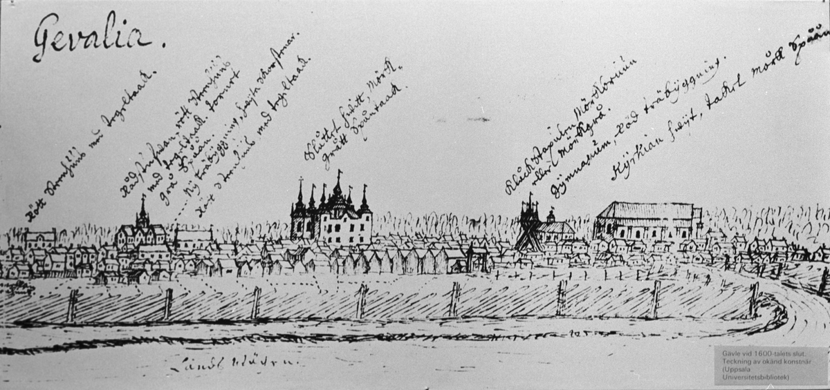 Gävle vid 1600-talets slut. Teckning av okänd konstnär.