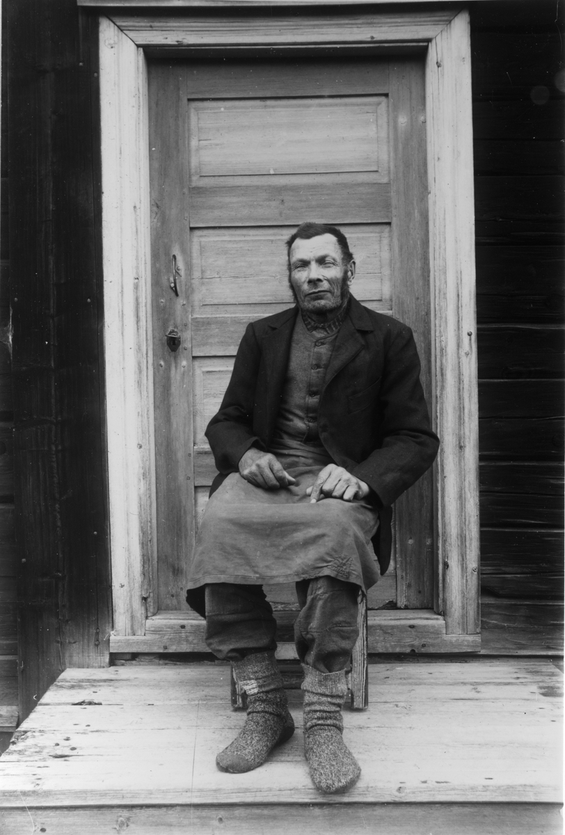 Kull-Anders (Andersson) utanför sin stuga intill nuvarande Wickströms i Voxsätter.