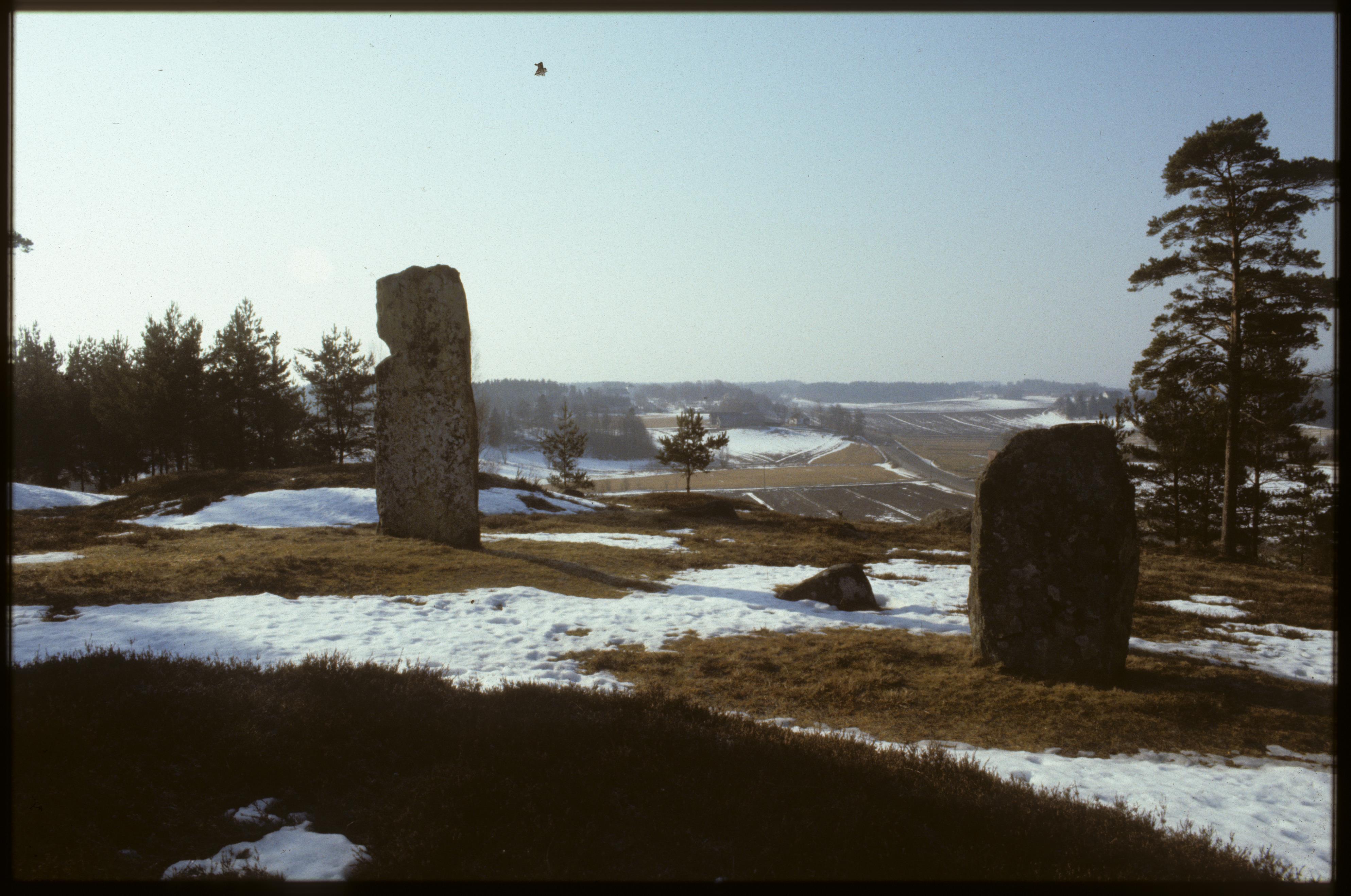 Ödeborg 14:1. Gravfält. Orten där gravfältet finns heter Håvesten, och namnet är troligen efter den resta stenen på bilden.