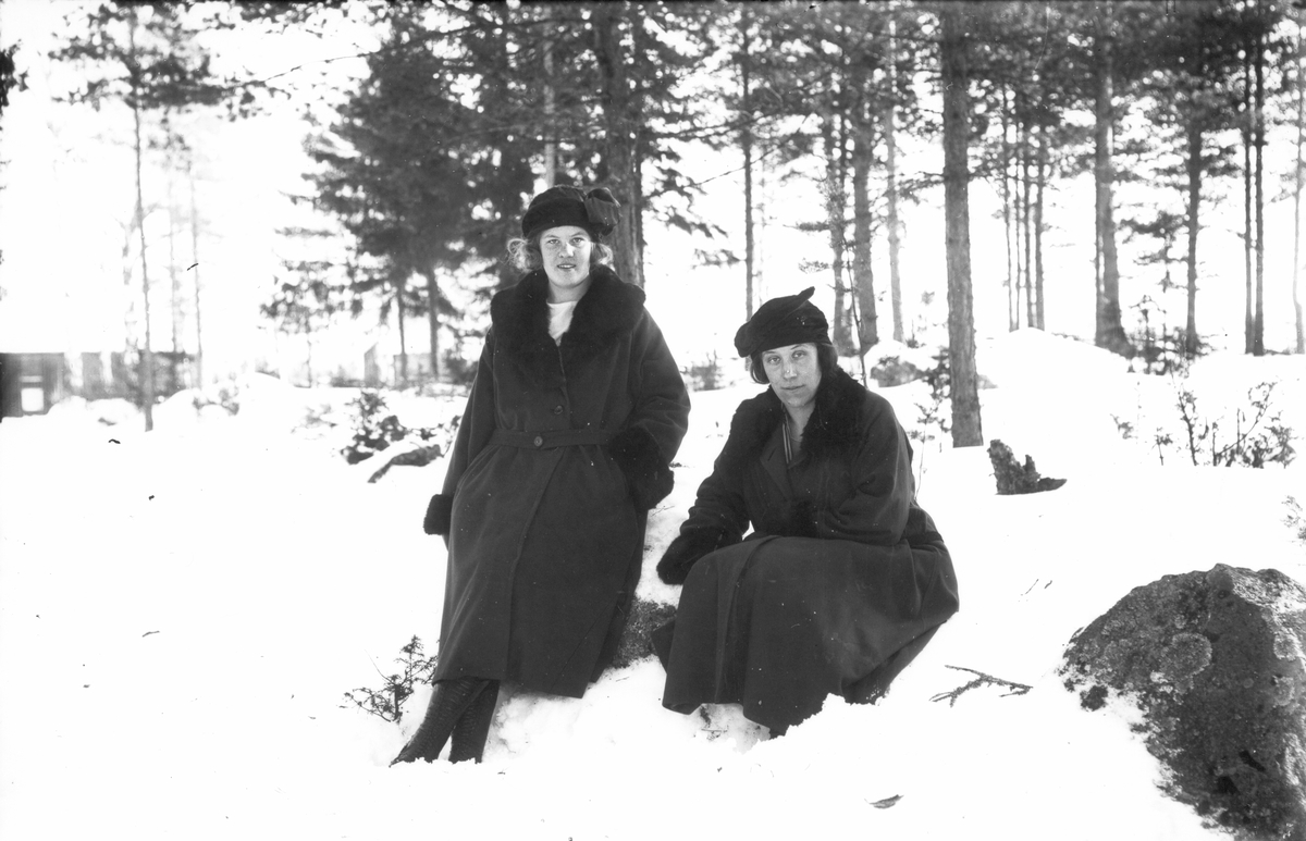 Två kvinnor, till vänster Märta Nilsson från Näset, född 1903, Voxsätter nr 1, kvinnan till höger okänd.