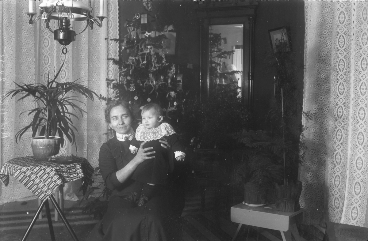 Rumsinteriör, okänd kvinna med barn.