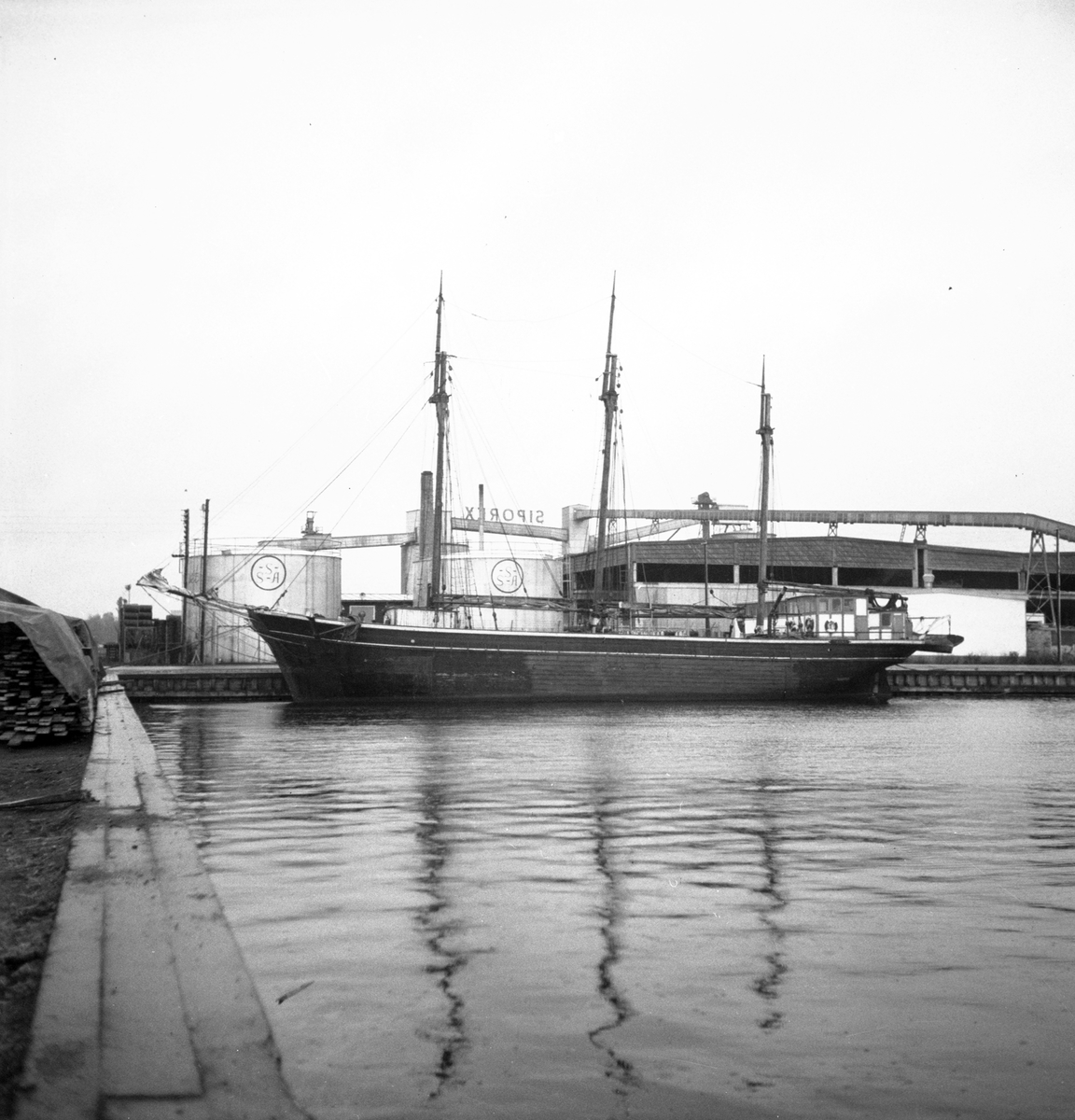 Titel: Gävle inre hamn, en tremastare. 16 oktober 1950.