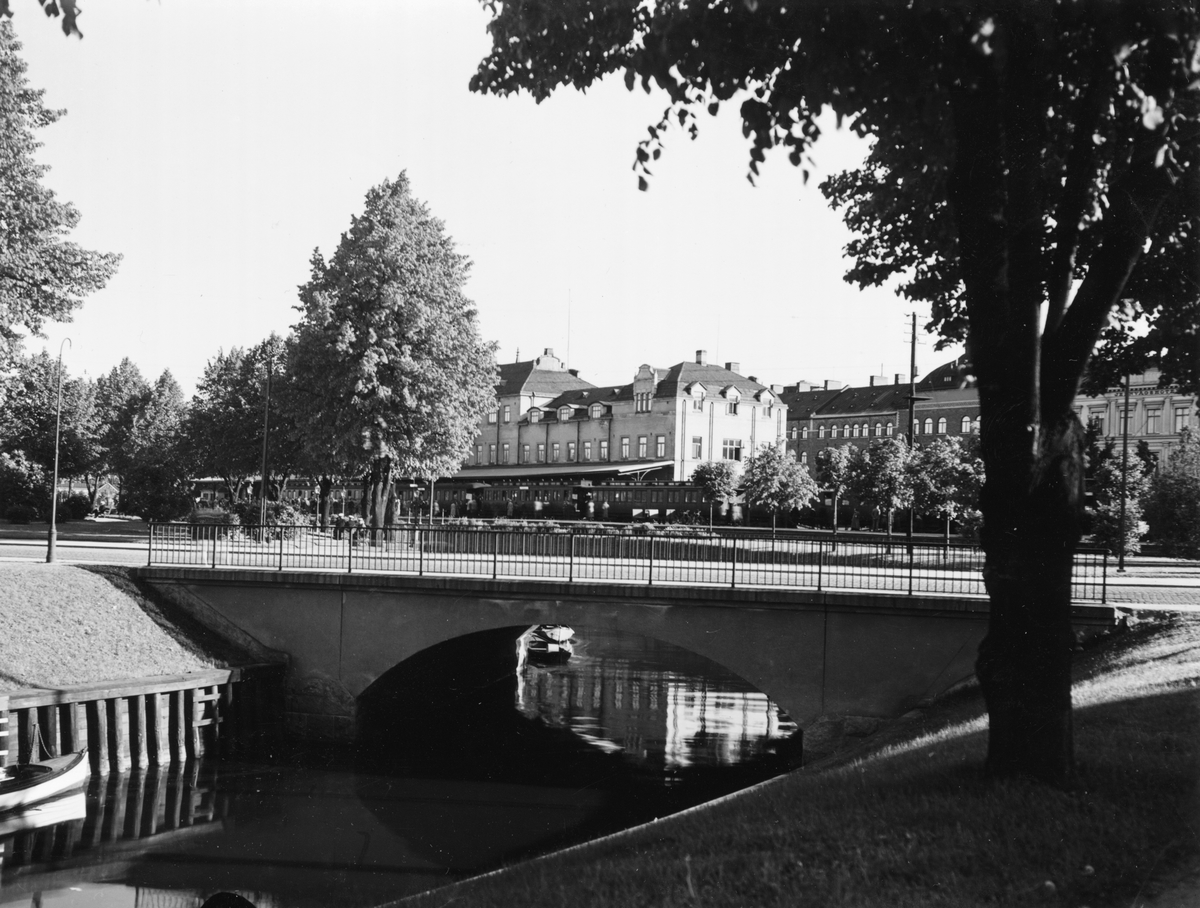 Holmbron över Lillån. I bakgrunden Centralstationen.