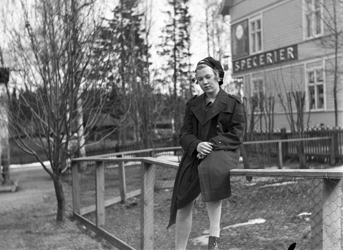 Flicka sitter på staketet vid Hylanders i Kilafors