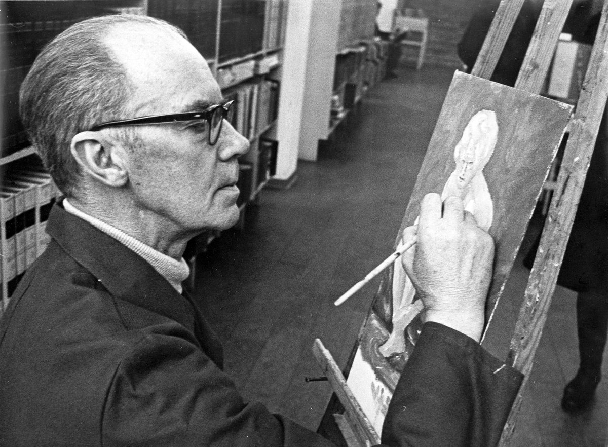 Konstutställning på Stadsbiblioteket i Gävle. ABF, bildningsverksamhet i Gävle
