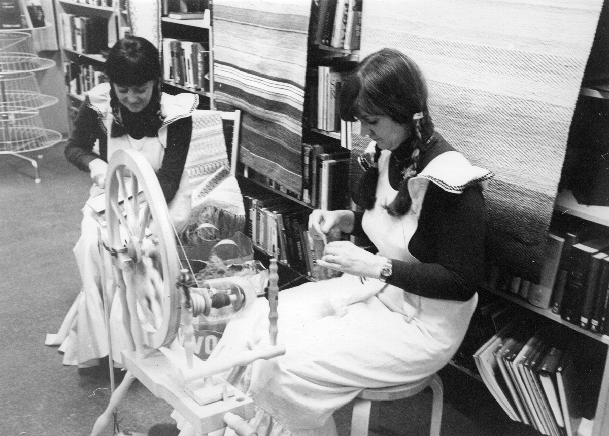 Spinnrock på Stadsbiblioteket i Gävle. ABF, bildningsverksamhet i Gävle